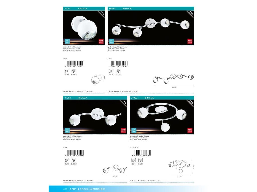 Eglo 31001 WL/1 GU10-LED WEISS/CHROM BIMEDA, Pontlámpa