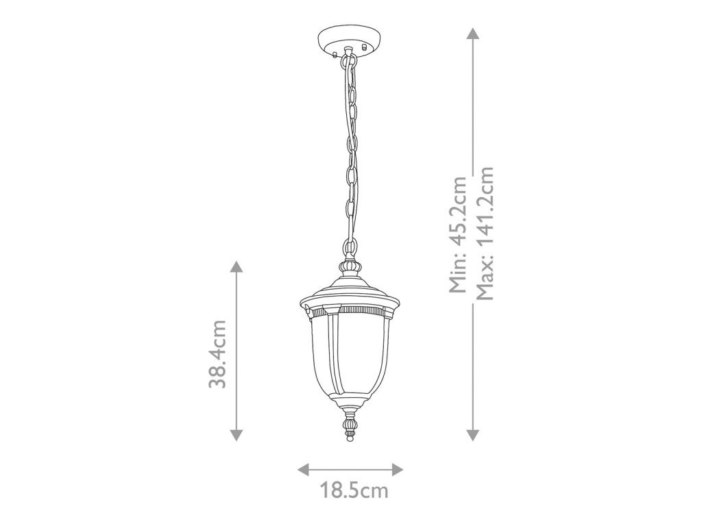 Elstead Lighting CLEVELAND CL8-S – klasszikus megjelenésű kültéri függeszték Angliából, amely elegáns és időtálló megoldást kínál bejáratok, verandák és fedett kültéri terek megvilágítására. Letisztult formavilága és fekete kivitele harmonikusan illeszkedik különböző építészeti stílusokhoz. Megbízható kivitele kellemes, hangulatos fényt biztosít kültéri környezetben.