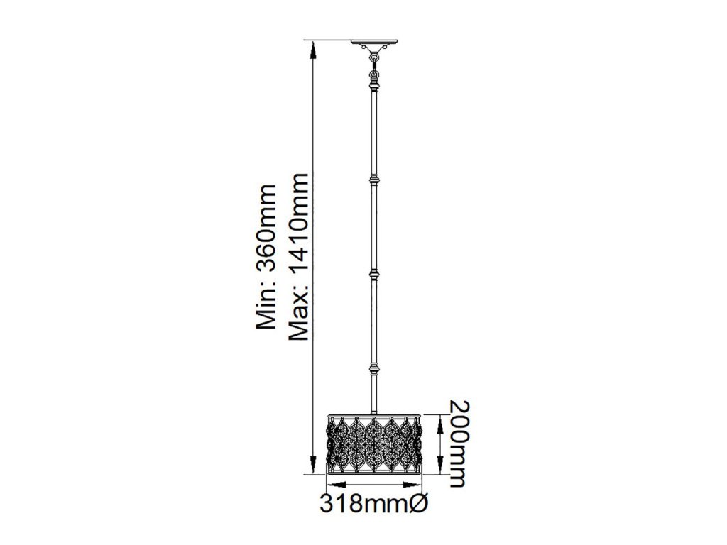 | Méret (mm): | H: 200mm D: 318mm Min/Max Drop: 360mm - 1410mm |