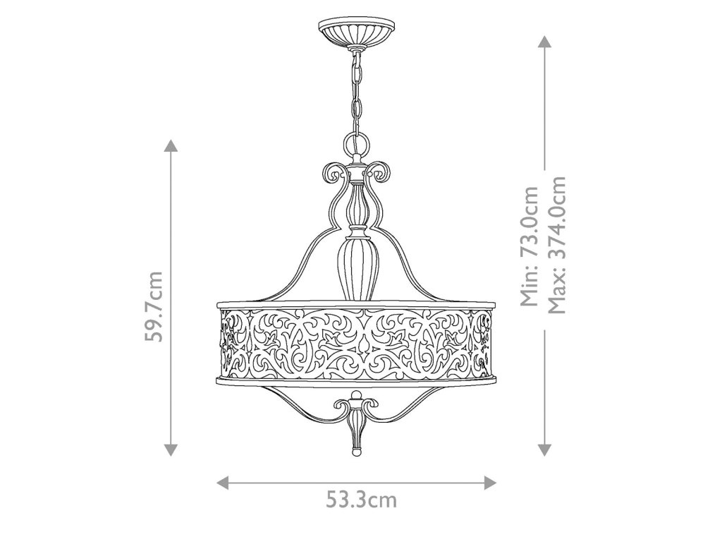 | Méret (mm): | H: 597mm D: 533mm Min/Max Drop: 730mm - 3740mm |