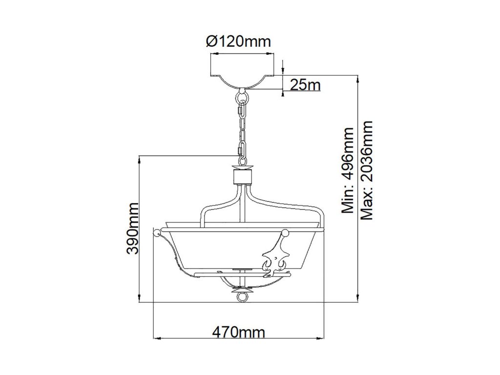 | Méret (mm): | H: 390mm (Semi-Flush = 408mm) D: 470mm Min/Max Drop: 597mm - 2058mm |