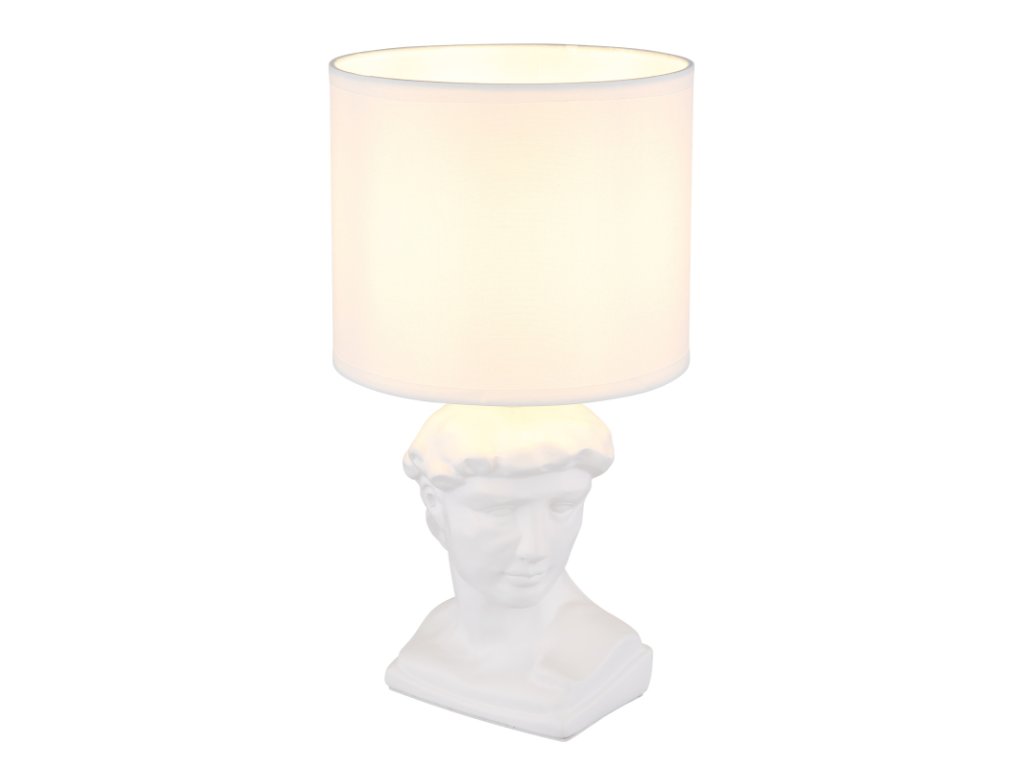 Asztali lámpa, kerámia fehér, textil fehér, kábel PVC fehér, billenőkapcsoló a kábelen, ø: 175mm, M: 330mm, kábel hossza 1300mm, 1x E14 40W 230V izzó nélkül