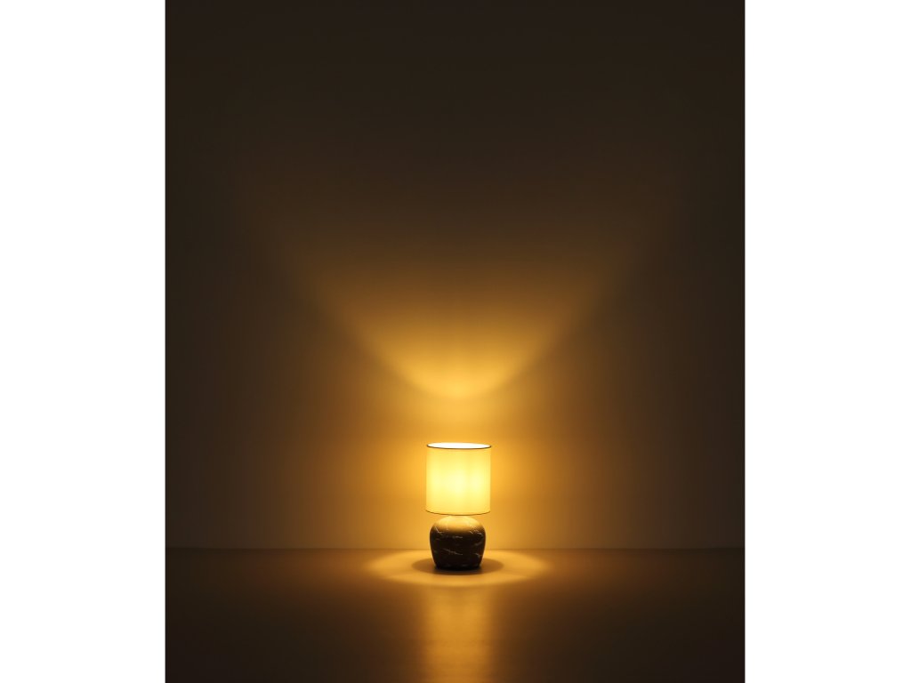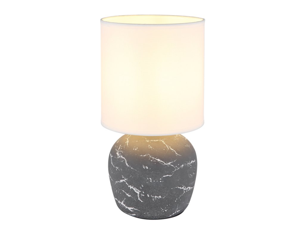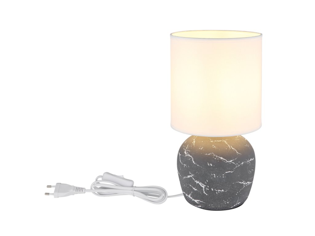 Asztali lámpa, kerámia szürke, textil fehér, kábel PVC fehér, billenőkapcsoló a kábelen, ø: 160mm, M: 315mm, kábel hossza 1300mm, 1x E14 40W 230V izzó nélkül