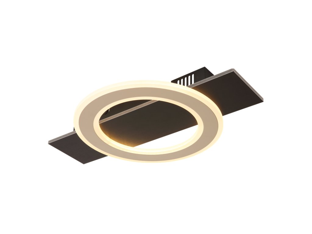 Mennyezeti lámpa, fém fekete matt, MDF sötétbarna szálcsiszolt, fém pezsgőszínű szálcsiszolt, akril fehér, HxSzxM: 440x290x52mm, tartozék: LED 18W 230V, 1740lm forrás, 1000lm kimenet, 3000K