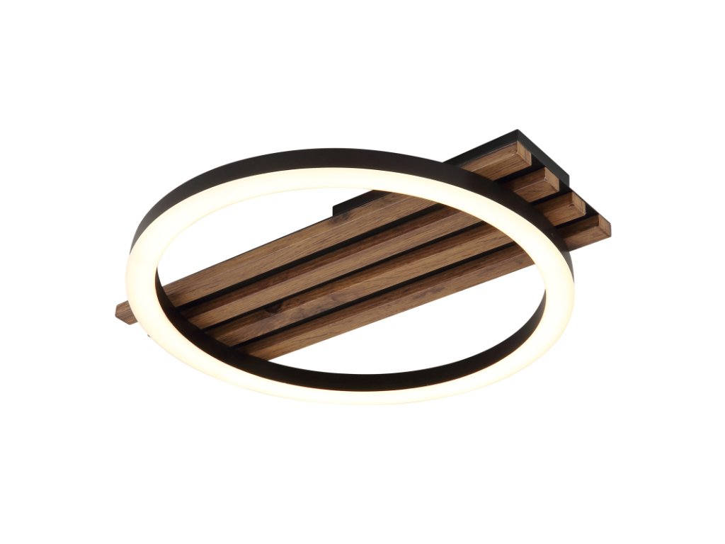 Mennyezeti lámpa, matt fekete fém, sötét fa megjelenésű MDF, matt fekete műanyag, fehér műanyag, HxSzxM: 340x300x60mm, tartozék: LED 12W 230V, 1250lm forrás, 600lm kimenet, 3000K