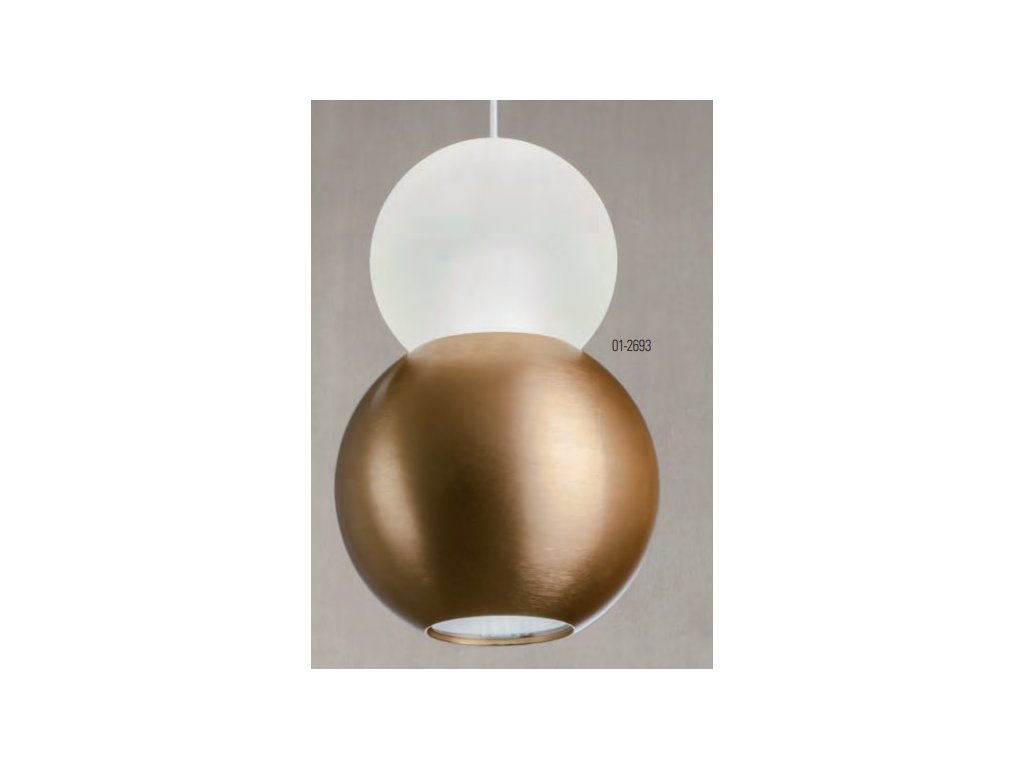 Beltéri függeszték, direkt/indirekt fényszórású, COB és SMD LED-el szerelve, réz eloxált arany alumínium és fém szerkezet, matt fehér akril diszperzór. 8W, 220-240V, 50/60Hz, 3000K, 851lm, IP20.
