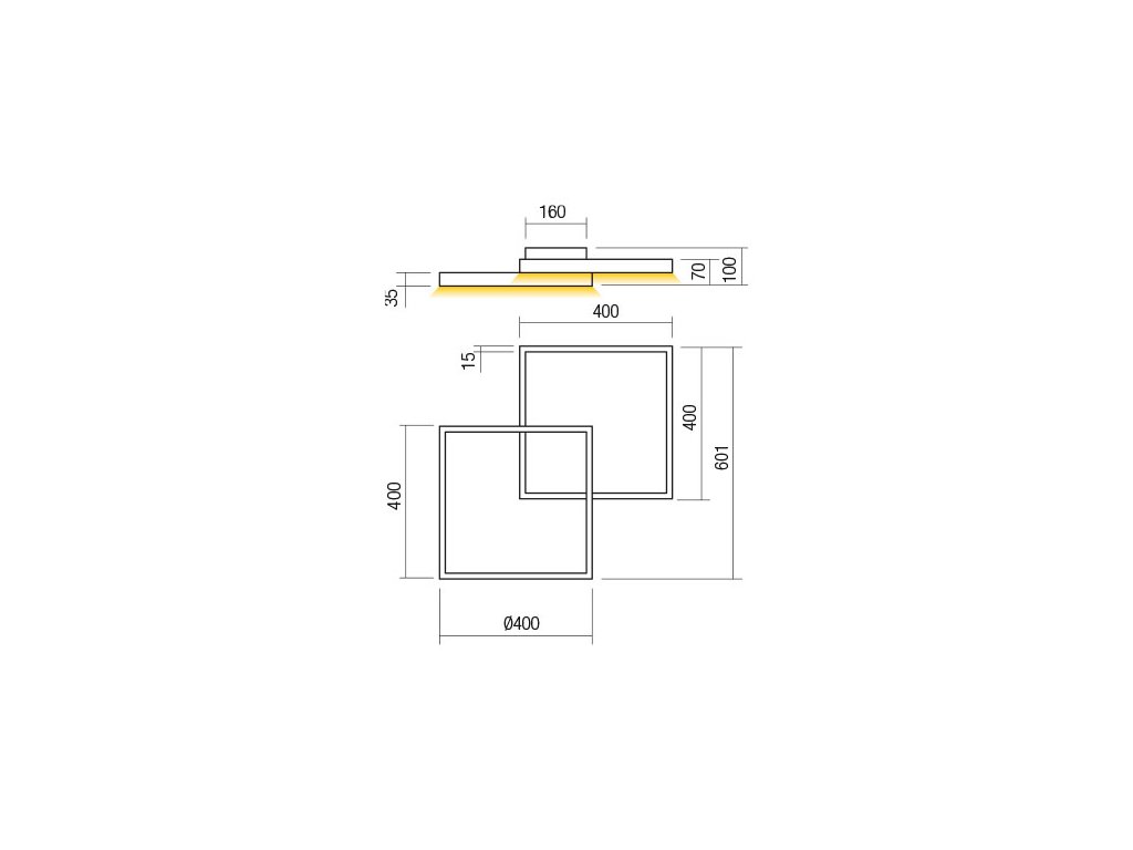Beltéri fali és mennyezeti lámpa, SMD LED-el, direkt (közvetlen) fényszórású, matt arany alumínium és fém szerkezet, fehér szilikon diszperzór. 220-240V, 50/60Hz, 3000K, 8432lm, IP20.