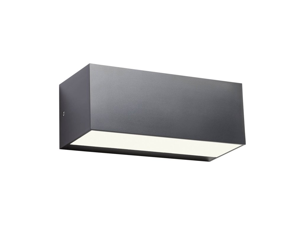 Kültéri fali lámpa, SMD LED-el szerelve, direkt/indirekt fényszórású. ABS sötét szürke szerkezet, opál polikarbonát diszperzór.